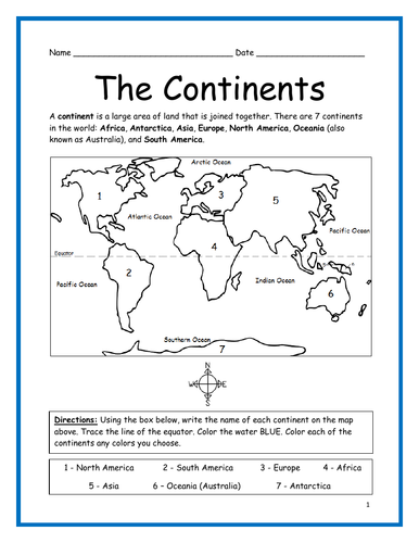 Using the oceans of the. Listening Comprehension Other contents. Worksheets - The 7 Continents coloring_sheet_redopdf Download File Download the file above to start off your lesson to introduce the continents names.